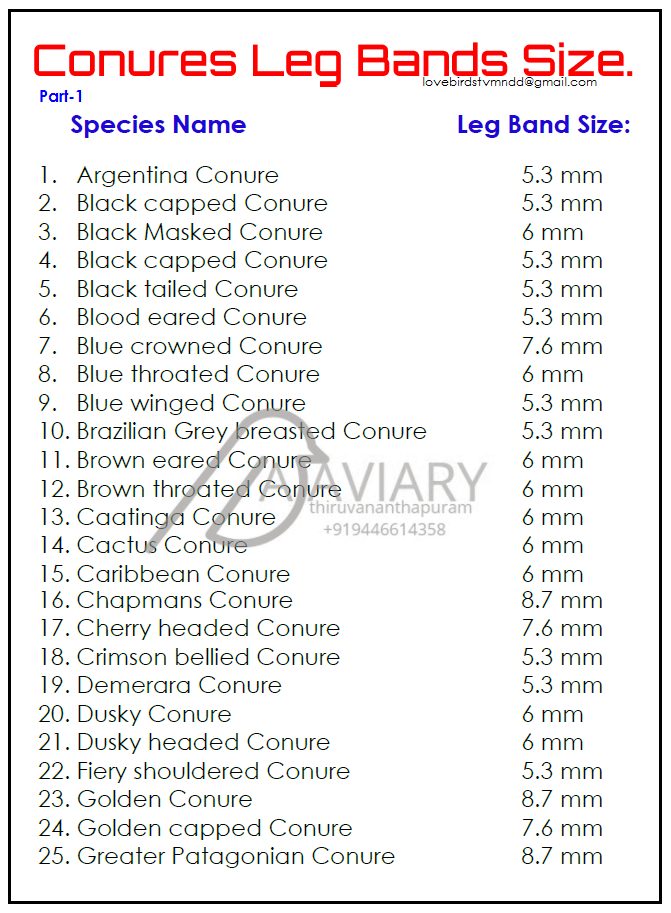 Conures Leg Bands Size.