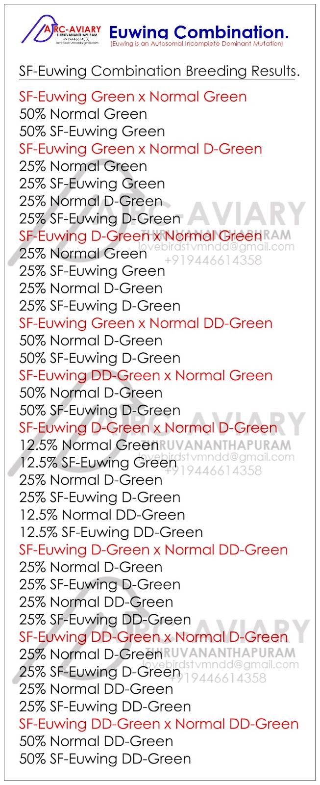 SF-Euwing Combination Breeding Results. on Thursday, December 20, 2018 Get link Facebook X Pinterest Email Other Apps Comments UnknownMay 24, 2019 at 6:14 AMBoth single factor euwing parents can produce double factor euwing offspring?ReplyDeleteRepliesReplyAdd commentLoad more... Post a Comment
